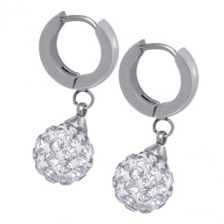 STAINLESS STEEL HUGGIE EARRING WITH CZ BALL ALL IN STEEL COLOR