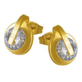 STAINLESS STEEL EARRING WITH BIG CZ WITH SCREW PATTERN ALL IN IPG COLOR
