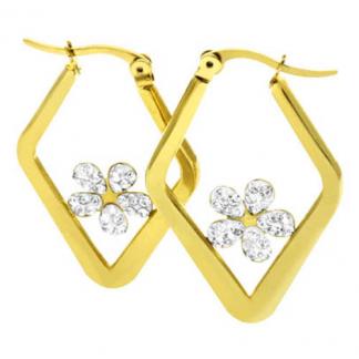 STAINLESS STEEL EARRING IN DIAMOND SHAPE WITH FLOWER WITH CZIN IPG COLOR