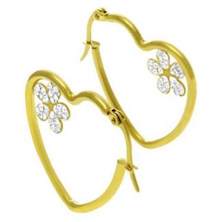 STAINLESS STEEL EARRING IN HEART SHAPEWITH FLOWER WITH CZ IN IPG COLOR