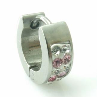 STAINLESS STEEL HUGGIE EARRINGS IN RING SHAPE WITH CZ