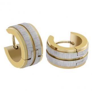 STAINLESS STEEL HUGGIE EARRING IN IPG TWO TONE WITH TWO STRIP SATIN
