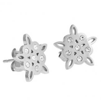 STAINLESS STEEL EARRINGS WITH FLOWER SHAPE WITH PEARL WITH CZ ALL IN S/S COLOR (Set with SN589)