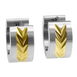 STAINLESS STEEL HUGGIE EARRINGS IN CIRCLE SEHAPE WITH IPG ARROW PATTERN IN IPG TWO TONES