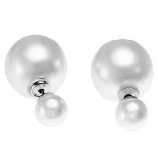 STAINLESS STEEL EARRINGS TWO SIDE IN PEARL SPHERE BALL