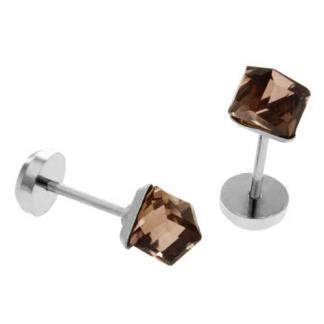STAINLESS STEEL EARRINGS CRYSTAL IN SQUARE SHAPE WITH BABY COVER