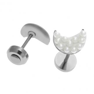 STAINLESS STEEL BABY EARRINGS ALL IN S/S COLOR IN MOON SHAPE WITH MICRO PEARL
