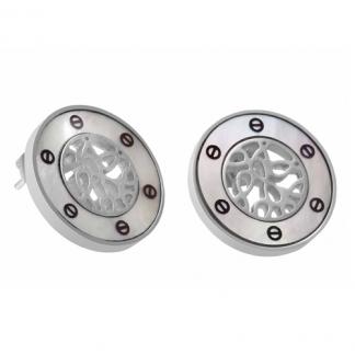 STAINLESS STEEL EARRING WITH WHITE SHELL AND SCREW DESING IN BLACK COLOR