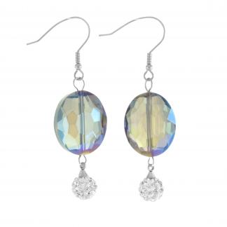 STAINLESS STEEL EARRING WITH CRYSTAL IN BLUE COLOR AND ONE CZ BALL