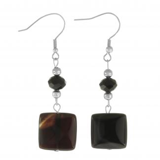 STAINLESS STEEL EARRING WITH ONYX AND CRYSTAL BALLIN BLACK COLOR