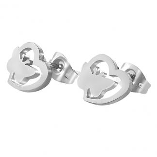 STAINLESS STEEL EARRING IN HEART SHAPE WITH BUTTERFLY