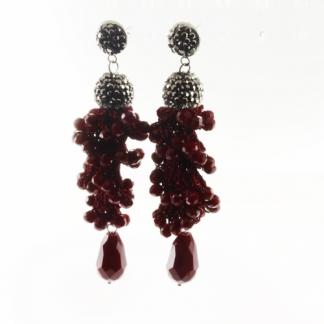 STAINLESS STEEL EARRING WITH CRYSTALS IN RED COLOR AND BLACK CZ ON THE CUPS.