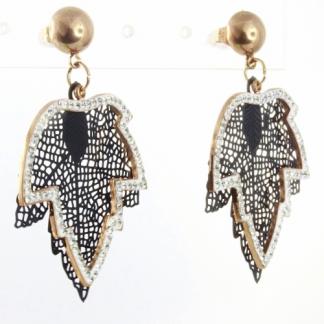 STAINLESS STEEL EARRING IN IPR AND IPB COLOR WITH CZ IN MAPLE LEAF SHAPE.