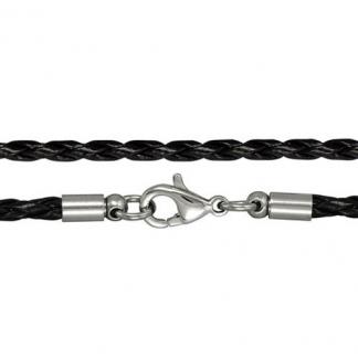 Stainless Steel Necklace with black PU with Steel Color Buckle
