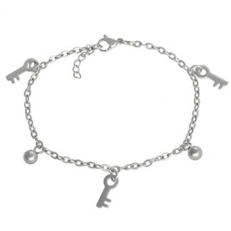 Stainless Steel Necklace In steel color with 2 beads and 3 key charms