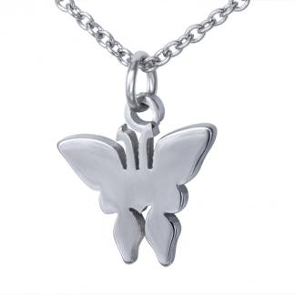 STAINLESS STEEL NECKLACE WITH BUTTERFLY PENDANT IN S/S COLOR