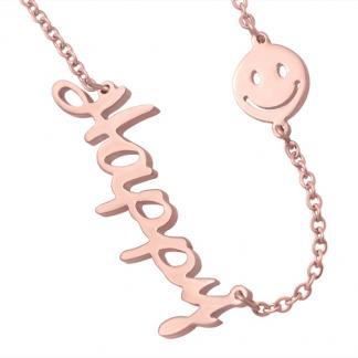 STAINLESS STEEL NECKLACE IPR WITH HAPPY WORD & SMILING FACE DESIGN