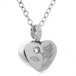 STAINLESS STEEL NECKLACE ALL IN STEEL COLOR WITH HEART PENDANT WITH CZ & ROSE LASER PATTERN