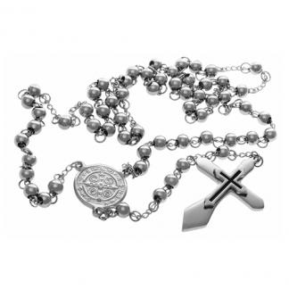 STAINLESS STEEL ROSARY NECKLACE IN S/S COLOR WITH CROSS PENDANT BLACK.