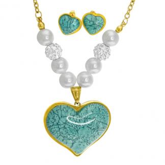 STAINLESS STEEL NECKLACE A PENDANT TURQUOISE STONE IN HEART SHAPE IN IPG COLOR WITH PZ & PEARL.