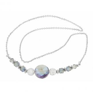 STAINLESS STEEL NECKLACE WITH CRYSTAL IN BLUE COLOR AND 2 CZ BALLS