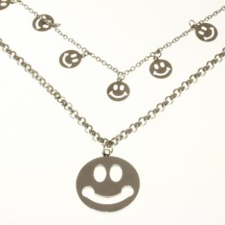 STAINLESS STEEL DOUBLE CHAIN WITH HAPPY FACE AND CENTER HAPPY FACE ALL IN S/S COLOR