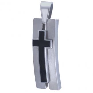STAINLESS STEEL PENDANT WITH BLACK ENAMEL IN CROSS SHAPE