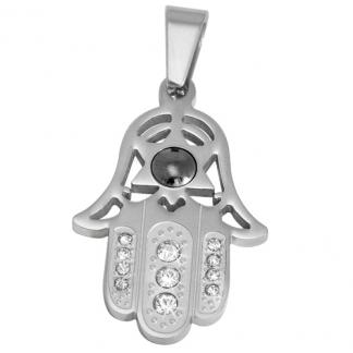 STAINLESS STEEL PENDANT In Hand Shape with CZ & black stone