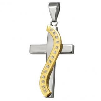 STAINLESS STEEL PENDANT In cross shape with CZ In IPG 2 tones