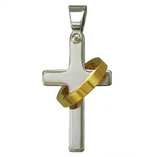 STAINLESS STEEL PENDANT In cross shape with CZ with IPG Ring In IPG 2 tones