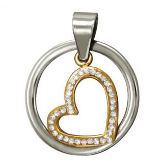 STAINLESS STEEL PENDANT In Circle shape with IPG heart with CZ In IPG 2 tones