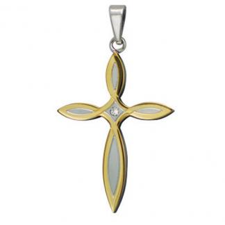 STAINLESS STEEL PENDANT In cross shape with CZ In IPG two tones