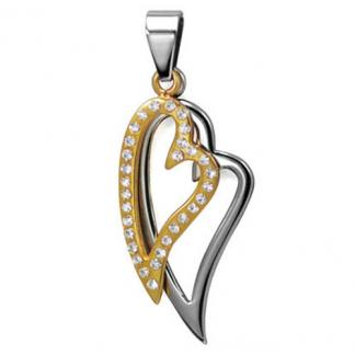STAINLESS STEEL PENDANT In heart shape with CZ In IPG two tones