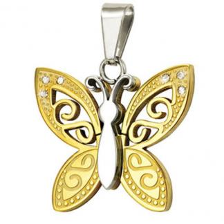 STAINLESS STEEL PENDANT In Butterfly shape with CZ In IPG two tones