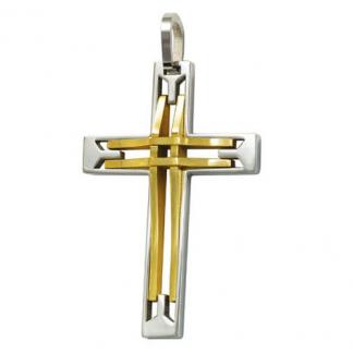 STAINLESS STEEL PENDANT In Cross shape with cut out In IPG two tone