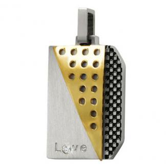 STAINLESS STEEL PENDANT IPG two tone with Black carbon fibre with cz
