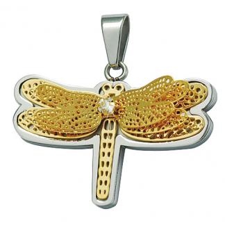 STAINLESS STEEL PENDANT In Dragon fly shape with cz In IPG two tone