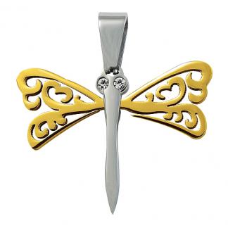 STAINLESS STEEL PENDANT In dragonfly shape with cz In IPG 2 tones