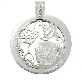 STAINLESS STEEL PENDANT In circle shape with rose pattern with 4cz