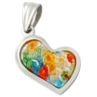 STAINLESS STEEL PENDANT In Heart shape with Colorful murano stone