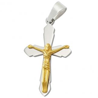STAINLESS STEEL PENDANT In Cross with Jesus In IPG two tone