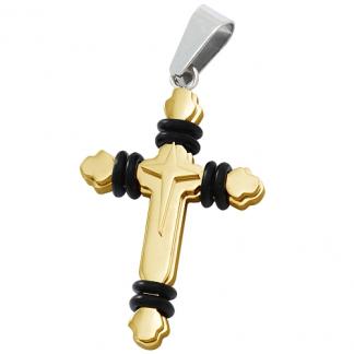 STAINLESS STEEL PENDANT In Cross Shape with PU In IPG two tones