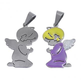 STAINLESS STEEL PENDANT Angel Girl Praying in yellow and purple enamel