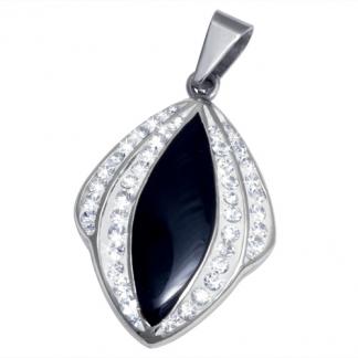 STAINLESS STEEL PENDANT IN DIAMOND SHAPE WITH BLACK COLOR WITH CZ IN S/S COLOR