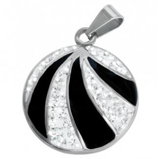 STAINLESS STEEL PENDANT IN CIRCLE SHAPE WITH CZ WITH BLACK COLOR IN S/S COLOR