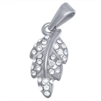 STAINLESS STEEL PENDANT IN LEAF SHAPE WITH CZ ALL IN S/S COLOR