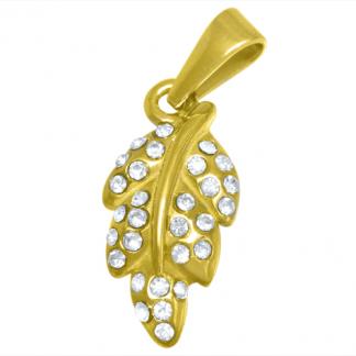 STAINLESS STEEL PENDANT IN LEAF SHAPE WITH CZ ALL IN IPG COLOR