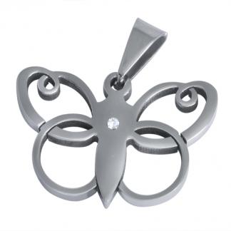 STAINLESS STEEL PENDANT IN BUTTERFLY SHAPE IN S/S COLOR WITH CZ