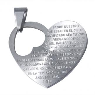 STAINLESS STEEL PENDANT IN HEART SHAPE WITH VERSE WITH HEART SHAPE CUTOUT