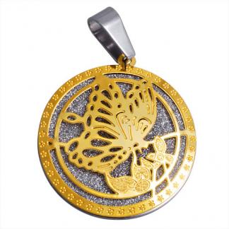 STAINLESS STEEL PENDANT IN CIRCLE SHAPE WITH 1 BUTTERFLY IN IPG 2 TONE